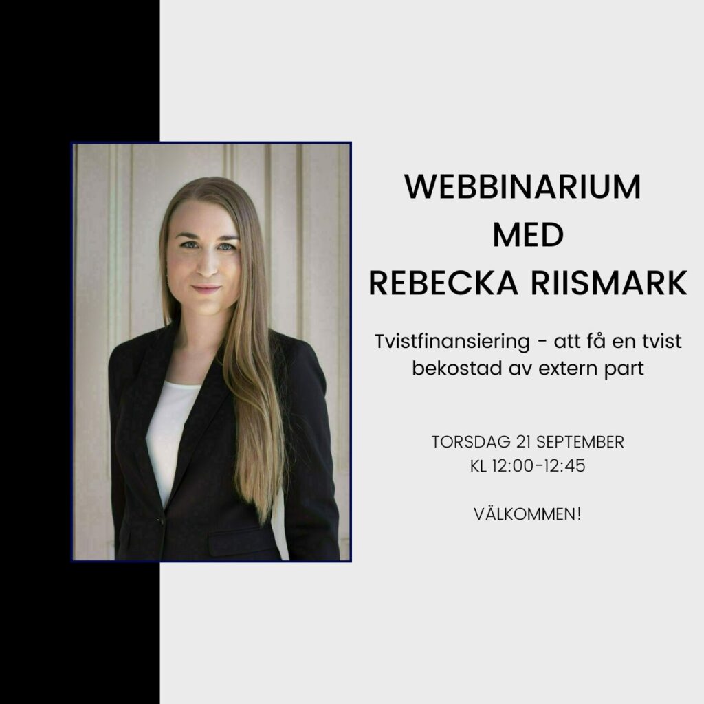 Den 21 september håller advokat Rebecka Riismark ett lunchwebbinarium igen för Legally Lady om ”Tvistfinansiering – att få en tvist bekostad av extern part”.